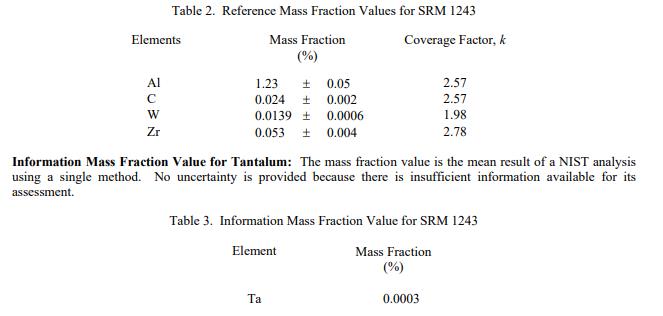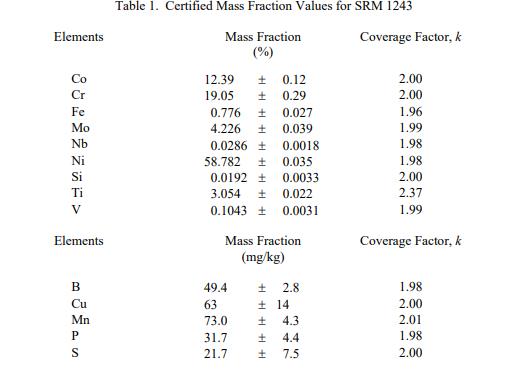 表 1 中報(bào)告了 SRM 1243 的 14 種成分的認(rèn)證值,作為收到時的質(zhì)量分?jǐn)?shù)值 [1]。 NIST 認(rèn)證值是 NIST 對其準(zhǔn)確性具有最高置信度的值,因?yàn)樗幸阎蚩梢傻钠顏碓炊家驯徽{(diào)查或考慮在內(nèi) [2]。價值分配分析由 NIST 和合作實(shí)驗(yàn)室進(jìn)行。
