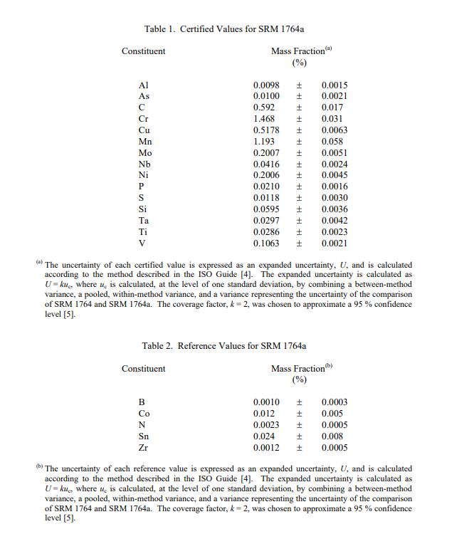 NIST SRM 1764 a 低合金鋼(標(biāo)準(zhǔn)品) 的認(rèn)證在規(guī)定的不確定性范圍內(nèi)無限期有效,前提是按照本證書中給出的說明處理和存儲(chǔ) SRM(請(qǐng)參閱使用說明)。但是,如果 SRM 損壞、污染或以其他方式修改,則認(rèn)證將失效。