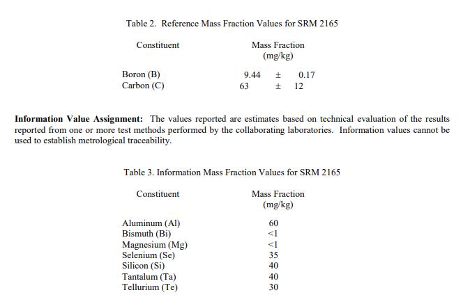SRM 2165 的 16 種成分的認(rèn)證值在表 1 中報(bào)告為質(zhì)量分?jǐn)?shù) [1]。 NIST 認(rèn)證值是 NIST 對(duì)其準(zhǔn)確性具有最高置信度的值,因?yàn)樗幸阎蚩梢傻钠顏?lái)源都已被調(diào)查或考慮在內(nèi) [2]。認(rèn)證值是存在的根據(jù) NIST 和合作實(shí)驗(yàn)室使用表 4 中所示的測(cè)試方法進(jìn)行的分析結(jié)果對(duì)真實(shí)值的最佳估計(jì)。
