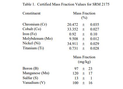 認證的質量分數值在表 1 [1] 中提供。 NIST 認證值是 NIST 對其準確性具有最高置信度的值,因為所有已知或可疑的偏差來源都已被調查或考慮在內 [2]。認證值是根據 NIST 和合作實驗室進行的分析結果對真實值的當前最佳估計。