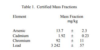 表 1 中提供了四種環(huán)境重要元素的認(rèn)證值。NIST 認(rèn)證值是 NIST 對其準(zhǔn)確性有最高置信度的值,因?yàn)樗幸阎蚩梢傻钠顏碓炊家颜{(diào)查或說明由 NIST 提供。