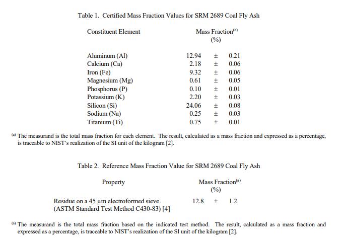 產(chǎn)品名稱:標(biāo)準(zhǔn)參考物質(zhì) NIST SRM 2689 - 粉煤灰