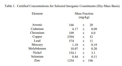 用于表征該 SRM 的分析方法在表 4 中給出。所有值均以質(zhì)量分?jǐn)?shù) [2] 的形式報(bào)告,以干重為基礎(chǔ),并且基于使用至少 100 mg 樣品質(zhì)量的測(cè)量值。