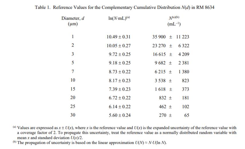 NIST 參考值是未經(jīng)認(rèn)證的值,它是基于可用數(shù)據(jù)對(duì)真實(shí)值的最佳估計(jì);然而,該值不符合 NIST 的認(rèn)證標(biāo)準(zhǔn),并且提供了相關(guān)的不確定性,可能僅反映測(cè)量精度,可能不包括所有不確定性來(lái)源,或者可能反映多種分析方法之間缺乏足夠的統(tǒng)計(jì)一致性 [1,2 ]。表 1 和表 2 中提供了粒度分布和形態(tài)參考值。這些值在計(jì)量上可溯源至使用的測(cè)量方法和校準(zhǔn)程序